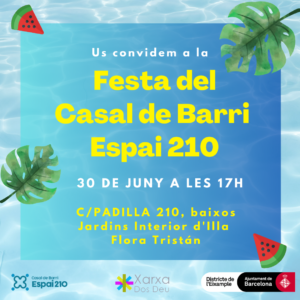 T’esperem el 30 de juny a les 17h al CB Espai 210 en un espai de trobada i reunió de totes les veïnes del barri i usuàries del casal on gaudirem de: