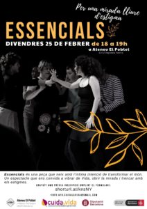 Segundo pase del espectáculo que se estrenó el pasado diciembre. “Esenciales” es fruto de la joven compañía amateur de Danza social DSE (Danzando Sin Etiquetas) que nace de la asociación Cuida la vida con el acompañamiento de la coreógrafa y bailarina Ona Mestre.