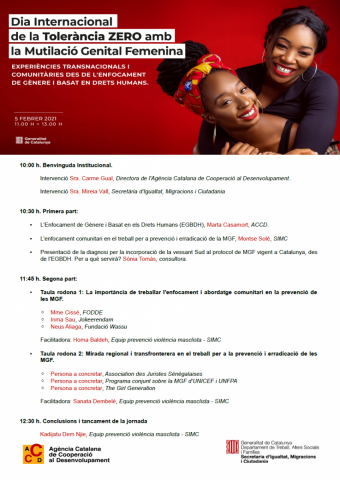 Des del Circuit Barcelona Contra la Violència Masclista ens envien informació de la Jornada organitzada per la Generalitat de Catalunya amb motiu del Dia Internacional de la Tolerància ZERO amb la Mutilació Genital Femenina.