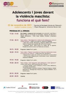 El programa de la jornada està pensat per crear un espai de debat sobre diversos aspectes relacionats amb la violència masclista quan afecta a joves i a adolescents, com són l’abordatge d’aquestes situacions, l’atenció que se’ls ofereix i la intervenció de joves agressors.
