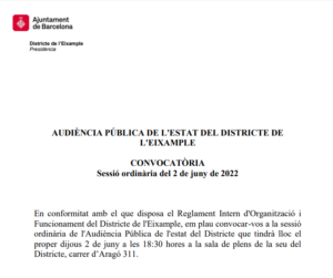 Audiència Pública, 2 de juny 18.30 h. – Districte de l’Eixample