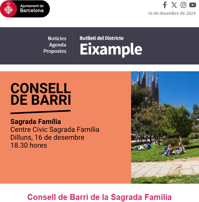 Dilluns, 16 de desembre, Consell de Barri de la Sagrada Família