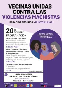El proper dilluns 20 de desembre de 2021 es farà un gran acte contra la Violència de Gènere i l’arribada dels primers Espais Segurs denominats Punts Liles al barri Besòs-Maresme començarà a les 17:30h al Centre Cívic del Besòs: