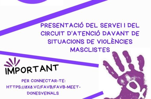 La Federació d’Associacions Veïnals de Barcelona (FAVB) camina cap unes associacions mes feministes i lluïta contra la violència de gènere. Es molt important el vostre suport! Ens veièm al Centre Cívic del Besos!