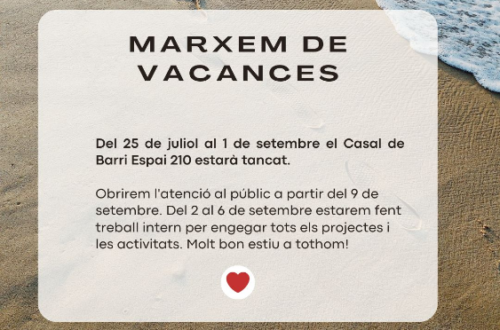 Us faig arribar els horaris del Casal de Barri Espai 210 pel mes de setembre de 2022: