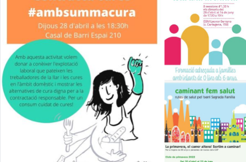Segueixen obertes les inscripcions al grup de Cuidado Comunitario i al cicle d’Acollida!!    Grup de Cures ComunitariEspacio seguro de encuentro de mujeres y disidencias migradas que se dediquen o quieran dedicarse al trabajo de cuidados. Desde el grupo se promueve la creación de redes de soporte y de ayuda mutua, espacios de participación y organización colectiva. Espai d’Acollida i Formació Agents d’AcollidaCiclo gratuito de información y asesoramiento en extranjería, servicios y proyectos comunitarios del barrio. Para resolver tus dudas puedes venir a una sola sesión. Si además quieres formarte como agente de acogida tienes que hacer todo el curso. Us deixem vídeos de projectes anteriors:https://www.youtube.com/watch?v=GcGGErJ4Rfkhttps://www.youtube.com/watch?v=rhtlYuakLOU&t=2s