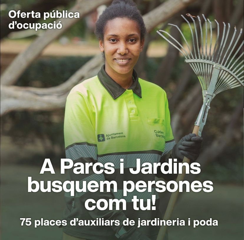 Ens posem en contacte amb vosaltres des del Servei per a la Promoció de la Diversitat de l’Ajuntament de Barcelona per informar-los de la nova convocatòria de 75 places de Parcs i Jardins, que creiem que pot ser del vostre interés.