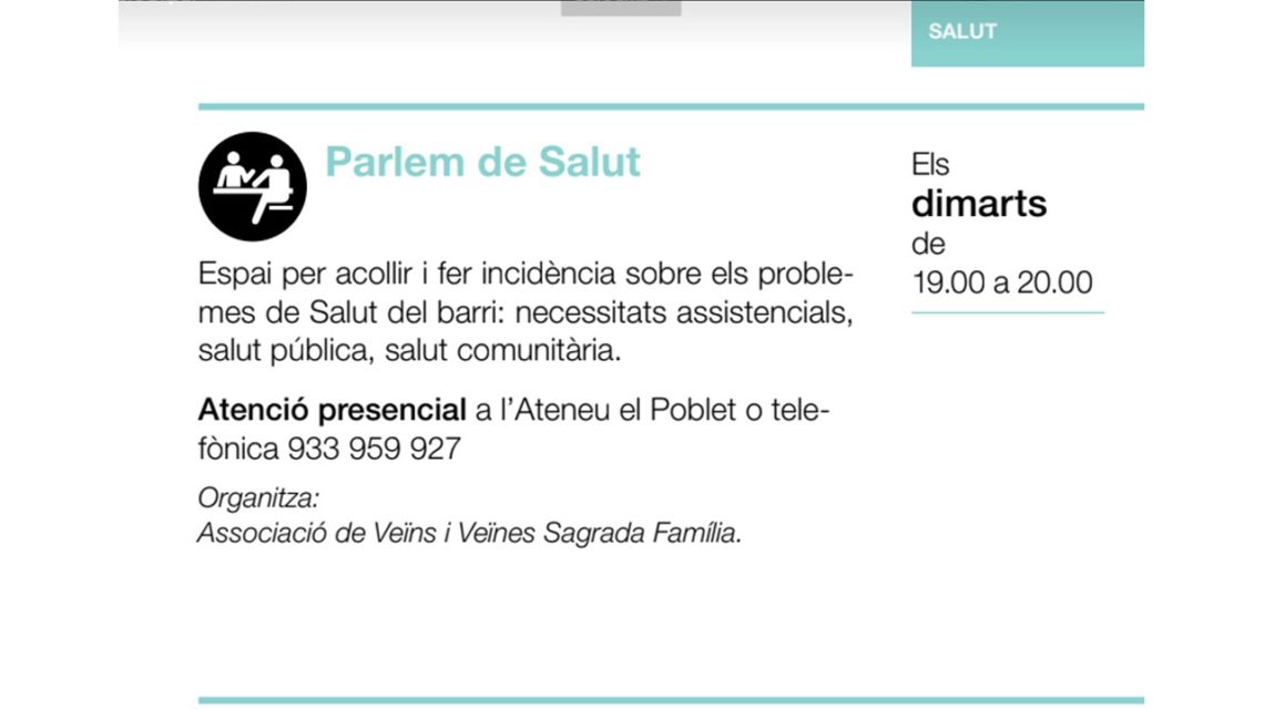 atenció presencial: a l’Ateneu el Poblet, carrer Napols, 270.