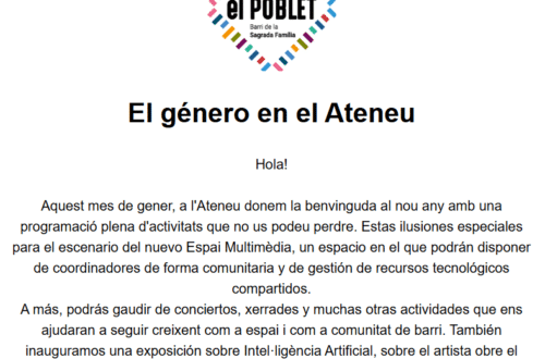 Al programa hi ha una errada a la pàgina 18: el concert “Aura” amb Monike Makon i Clara Martin, del Barcelona Districte Cultural, ja es va fer el 2 de desembre del 2021 i s’hi ha colat al programa d’enguany. Per tant, us demanem que no el difongueu. Moltes gràcies.
