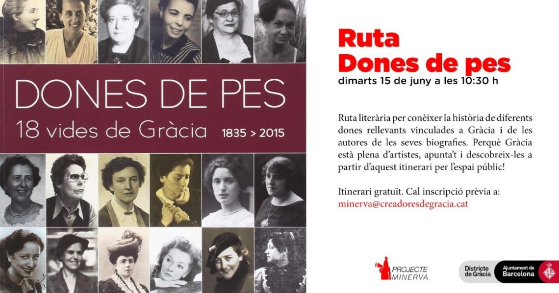 Ruta gratuïta, basada en el llibre DONES DE PES, que des del Projecte de dones creadores de Gràcia hem dissenyat per tal de difondre la vida de dones vinculades a GRÀCIA que van fer una feina important i que no ha tingut prou visibilitat.