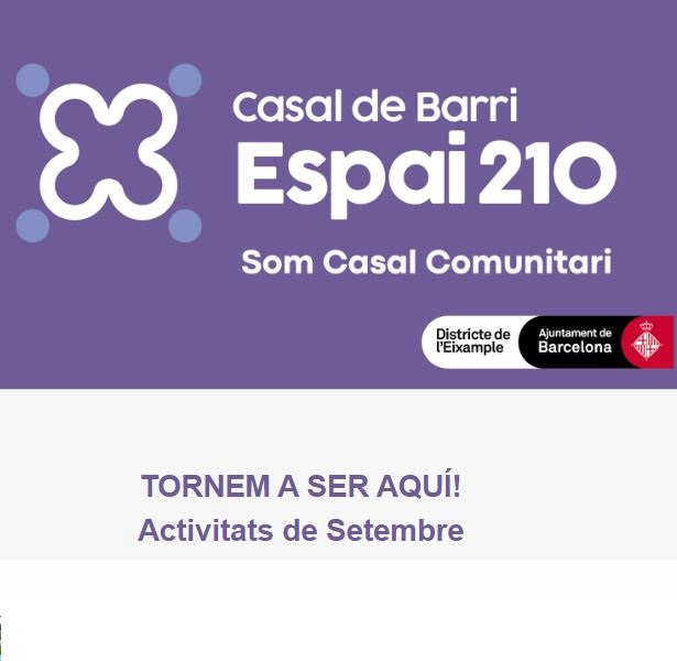 Engeguem al Casal de Barri Espai 210 amb moltes ganes de compartir amb vosaltres un nou trimestre.